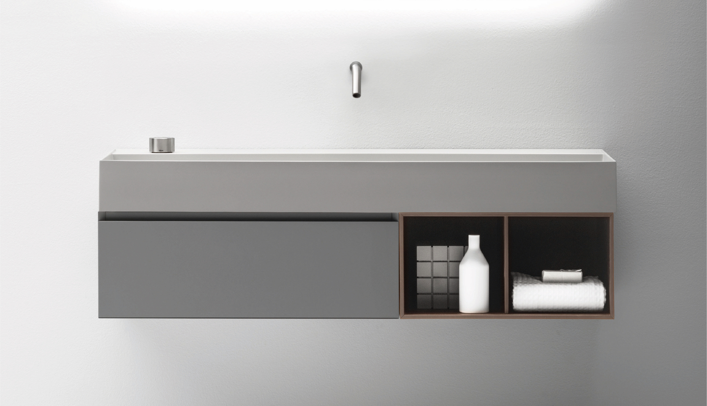 Chez FALPER, chaque détail a été imaginé avec talent. Solidité des charnières Blum, angles à 45°, niches en chêne massif, intérieurs de tiroir stylisé ou encore vasques révolutionnaires de 4.0 mm donnent un style original et esthétique à leur gamme de produits. Leurs collections surprennent aussi les amateurs de design par son accessibilité de prix. Un must have pour votre salle de bain.