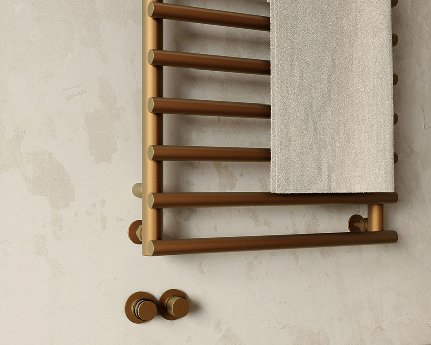 TWC crée des produits uniques en s’inspirant des détails architecturaux de la ville de New York. Ses sèches-serviettes à eau chaude, présenté en laiton vintage, utilise un brunissage minutieux d’une formule ternie secrète pour donner à cette finition un aspect bronze coulé unique, disponible en 18 finitions.